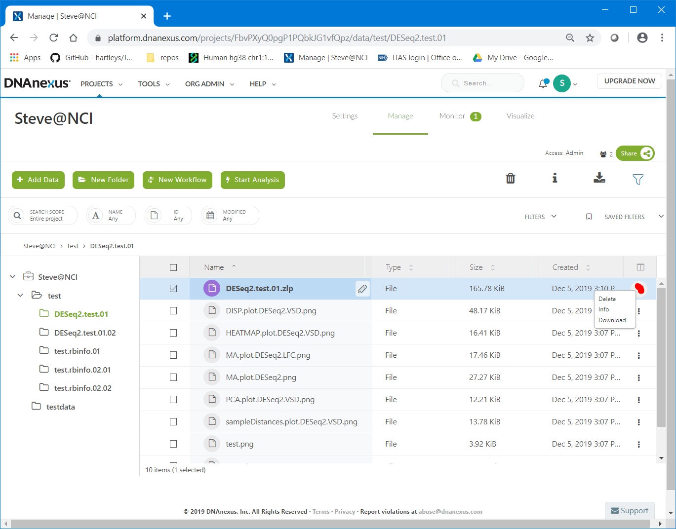 Similarly, files can be downloaded from DNA Nexus, although for large files you will incur fees.
