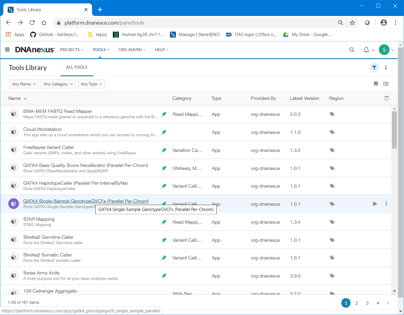 DNA nexus allows users and developers to create “apps” which can be shared and used to run analysis/data processing pipelines.